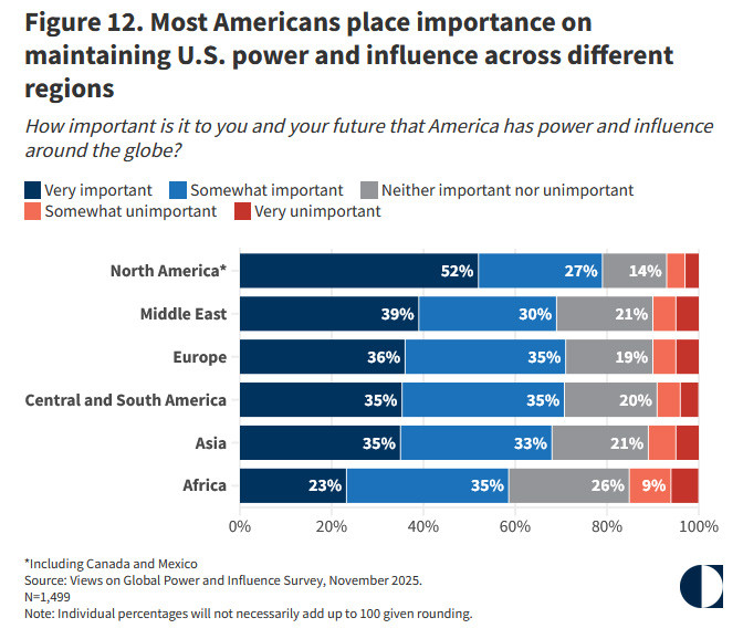 好意思国受访者对好意思国在不同地区保管实力和影响力的观念