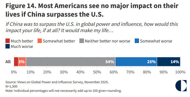 大大批好意思国受访者觉得,中国卓越好意思国不会让他们的糊口变差