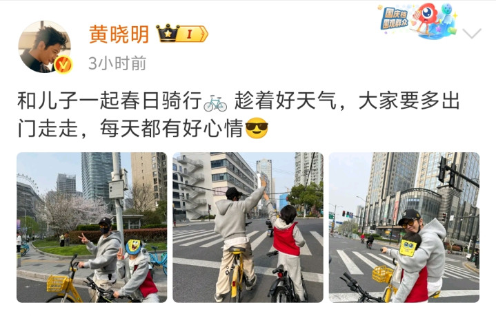 滚球app 黄晓明破天荒晒小海绵合照, 骑分享带女儿骑行, 满眼父爱藏不住