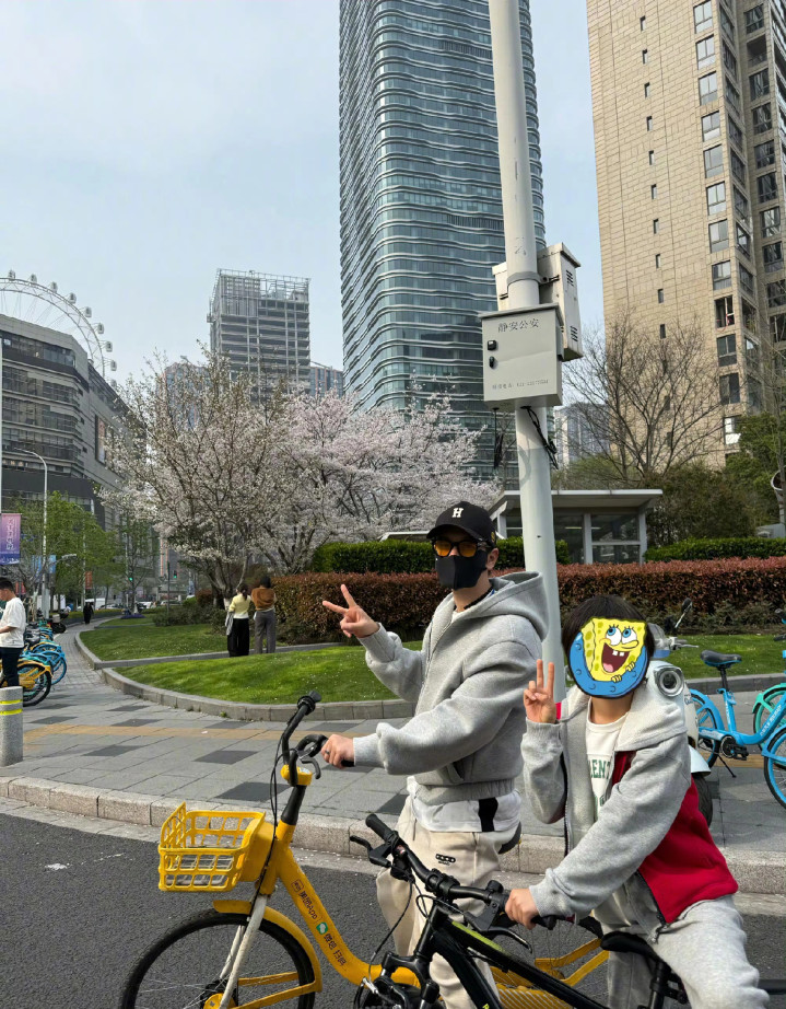 黄晓明骑的是分享自行车,粗浅用不上预计就没买是以用分享更便捷,9岁小海绵则领有我方的玄色自行车,父子俩在街头欢叫合影。黄晓明很防御被拍,是以戴了玄色口罩防患被认出来吧!