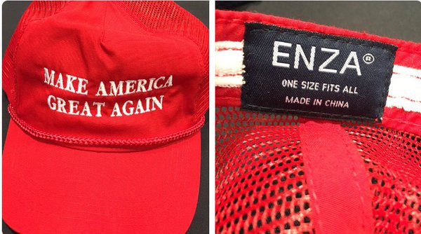 特朗普搞“好意思国制造”,嘴上说要让工场回好意思国,现实上连我方的竞选帽子MAGA皆照旧中国制造的。