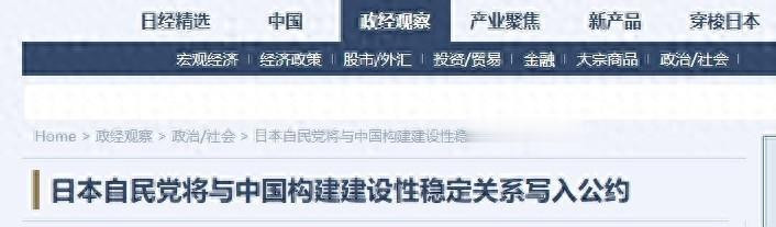 据日媒报说念,在自民党公布的竞选摘要里,外界昭着发现了一条涉华应许,那即是“寻求与中国构建建造性的郑重干系”。