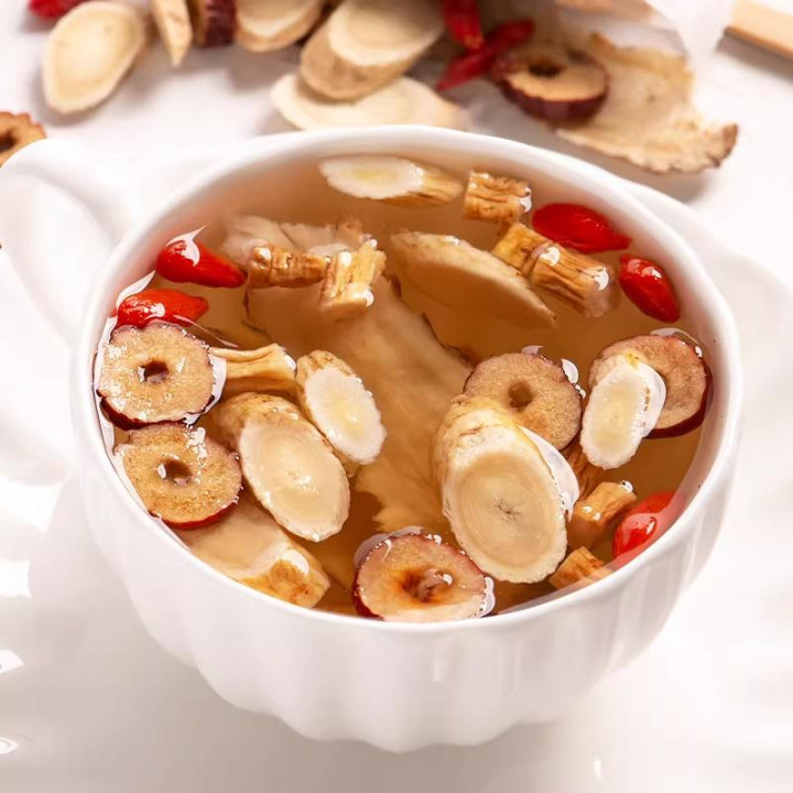 黄芪防风茶——若是你老是容易伤风、一遇冷鼻炎就犯,这杯茶即是你的“转移重视罩”。黄芪10克、防风6克、白术8克,开水冲泡代茶饮。这三味药构成的“玉屏风散”,是中医里经典的固表方剂,帮你加固身段的“防范城墙”。
