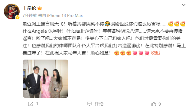 什么Angela休学呀!什么缅北诓骗呀!等等各式瞎掰八谈……请大众不要再传播坏话!散了吧…大众皆禁锢易!多温煦下我方和家东谈主吧!他们才最需要你们的关注!也感谢咱们的讼师团队和各大平台帮咱们打击驳诘申斥!在此绝顶感谢!随即要过年了!在此祝大众马年大吉!欣然如意!