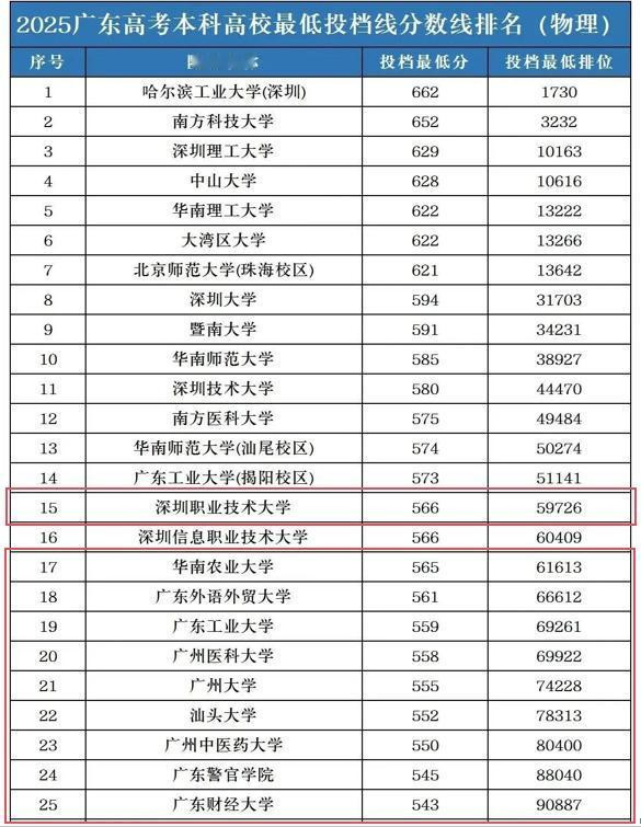 深圳职业技术大学、深圳信息职业技术大学投档线超过双一流华南农业大学